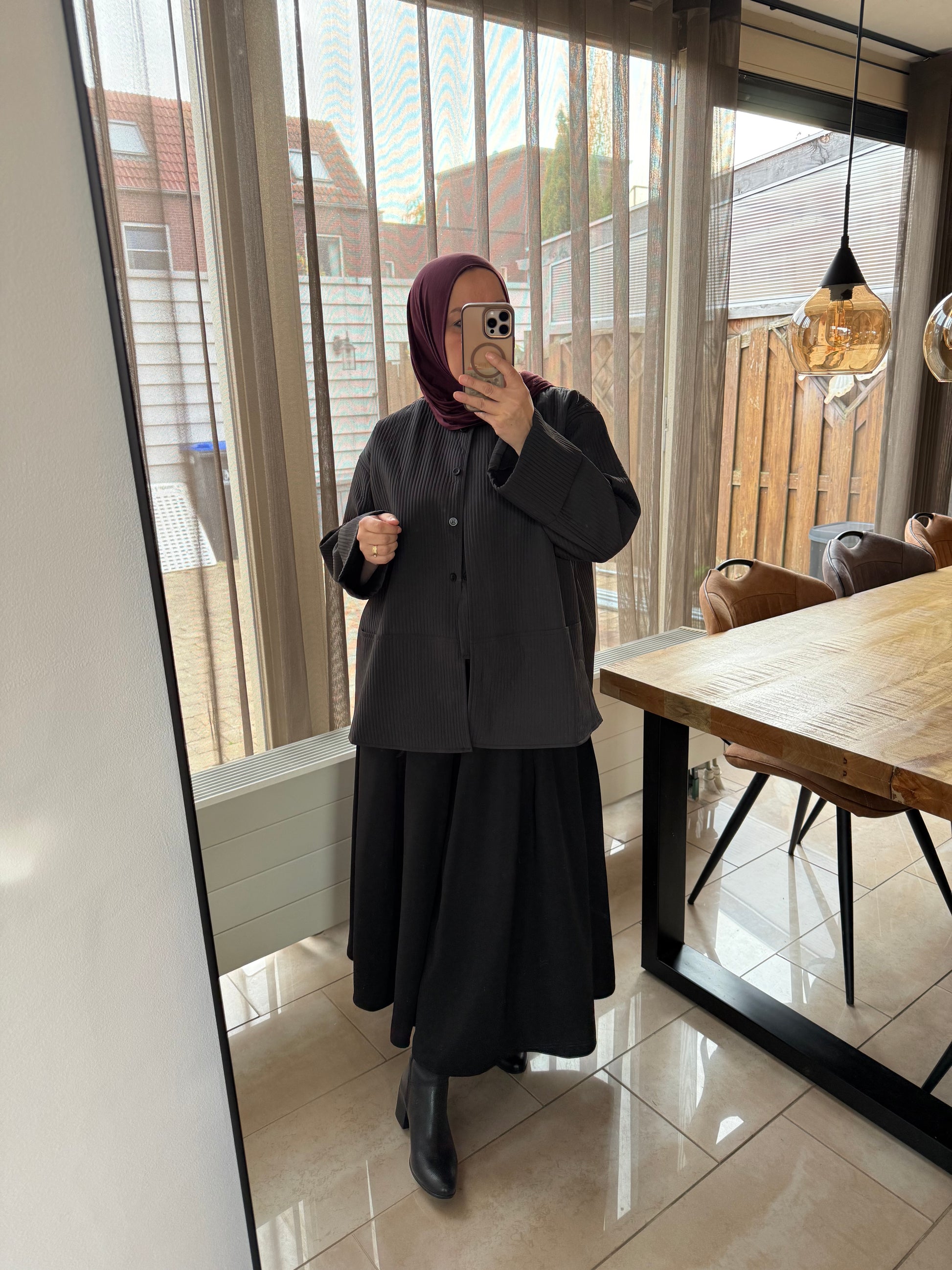 Zwart oversized jasje met zakken en wijde mouwen met omslag. Je kunt het veelzijdig combineren met zowel een rok als een broek. Licht gevoerd zachte fleece.